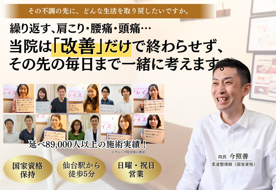 一般的な整体院・整骨院は歪みをとるだけ、筋肉の硬い所をマッサージするだけですが、それだけでは不十分だと当院では考えています。